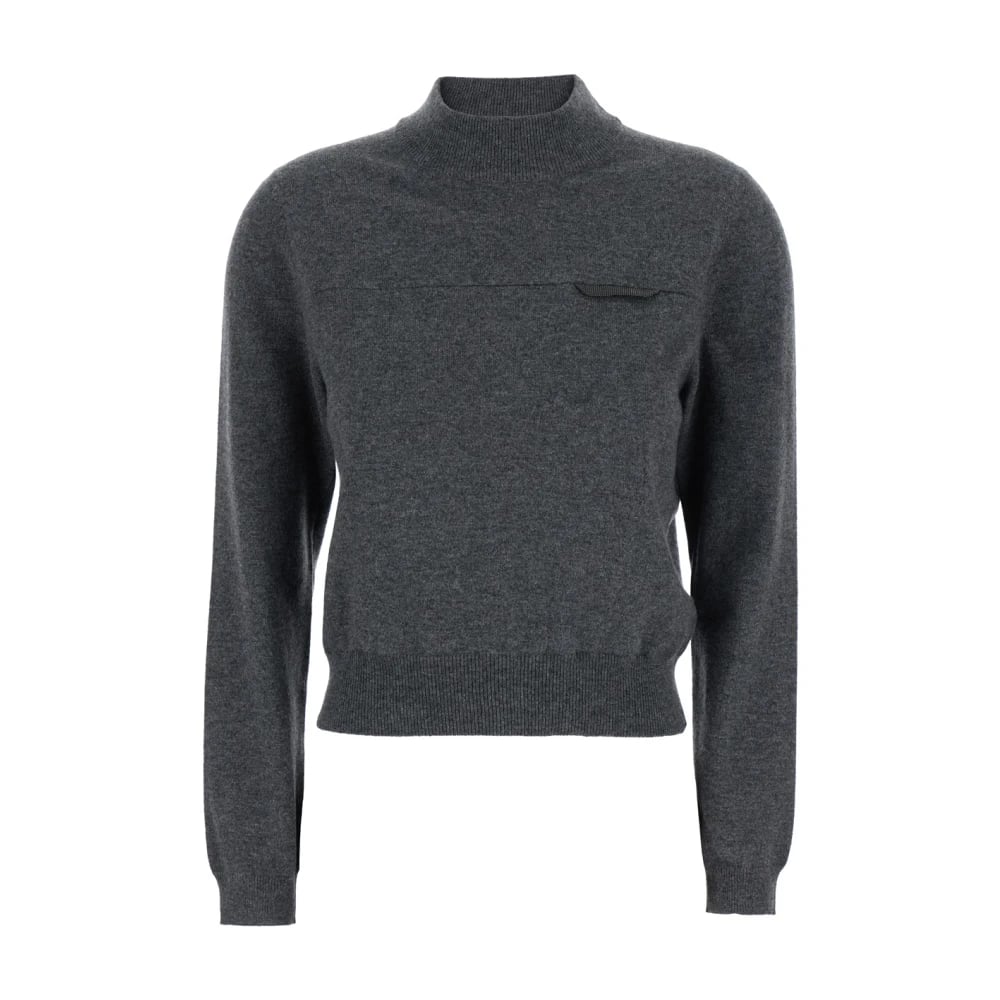 Brunello Cucinelli, Stickade Tröjor , Dam, M, Kashmir, Mock Neck Sweater