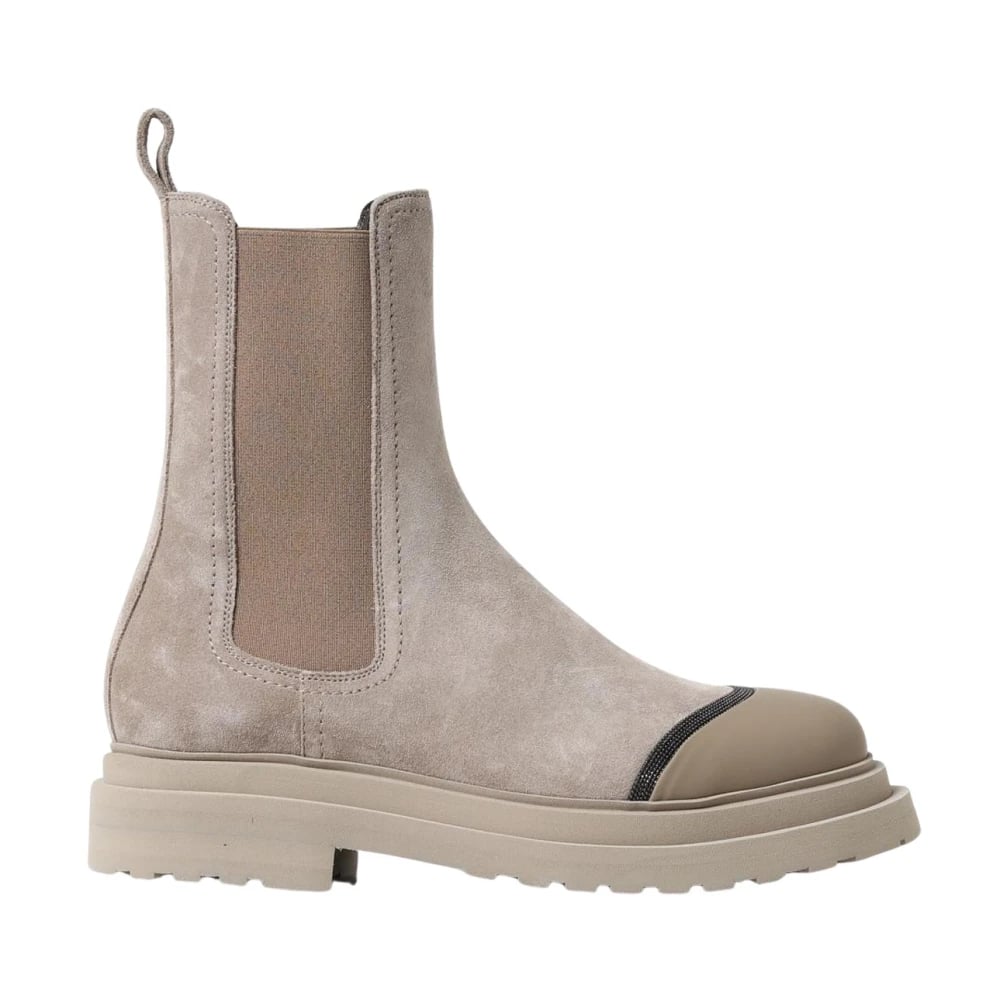 Brunello Cucinelli, Skor , Dam, 40 EU, Mocka, Chelsea Boots i mocka med Chunky-sula