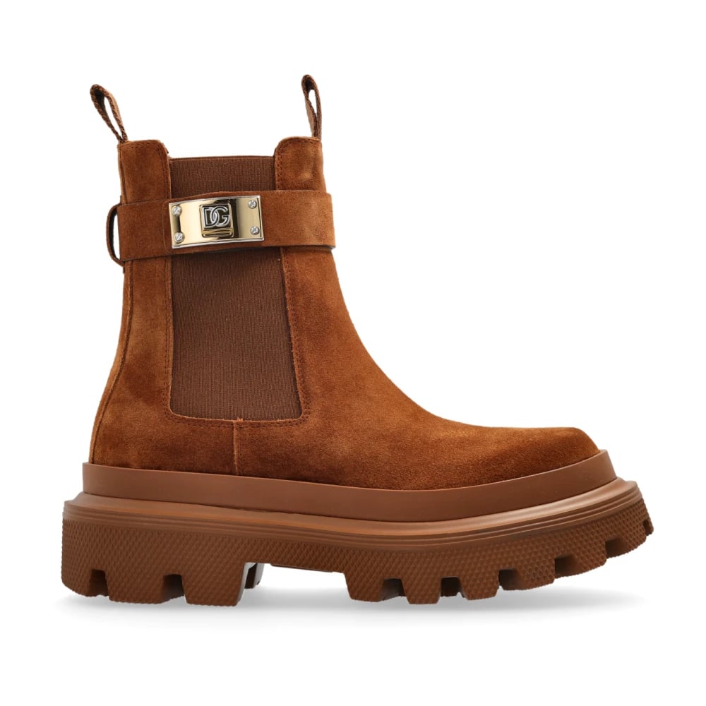 Dolce & Gabbana, Skor , Dam, 37 1/2 EU, Mocka, Mocka chelsea boots