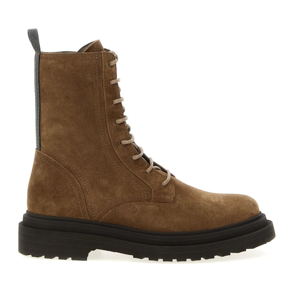 Brunello Cucinelli, Skor , Dam, 37 EU, Mocka, Suede Combat Boots Monile
