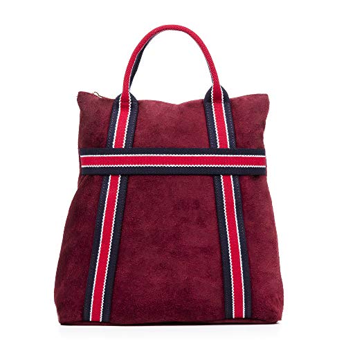FIRENZE ARTEGIANI. Venusta Ryggsäck Dam.Äkta läder Mocka Premium Canvas Tryck 35x10x35 cm. Färg: Bordeaux, Bordeaux, Talla única, Avslappnad