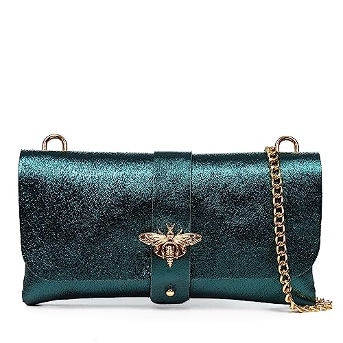 FIRENZE ARTEGIANI. Amaseno axelväska kvinna. Äkta läder lackerad mocka. 23x5,5x12 cm. Färg: Smaragdgrön, Smaragdgrön, Utility