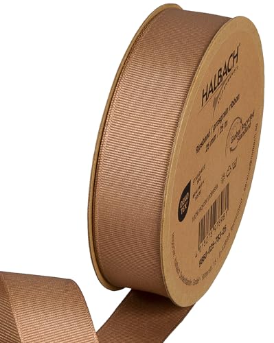 Halbach sidenband premium ripsband | bredd: 25 mm längd: 25 m | hållbart presentband av återvunnen polyester | Perfekt som band | färg: mocka