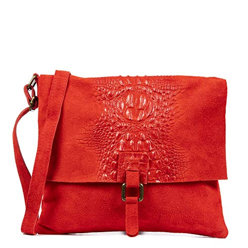 Firenze Artegiani. Daniela Axelväska Dam Äkta Läder Mocka Gravering Krokodil 34 x 5 x 31 cm. Färg: Röd, Röd, Utility