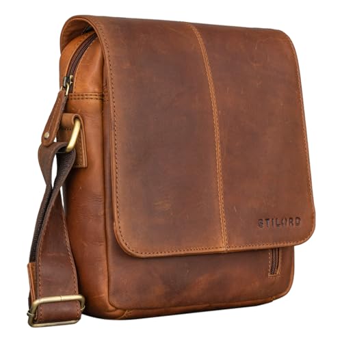 STILORD "Matt läderväska män liten vintage axelväska axelväska herrväska för 9,7 tum iPads surfplatta herrhandväska messengerväska äkta läder färg: mocka – mörkbrun, Cognac – brun, S, Axelväska