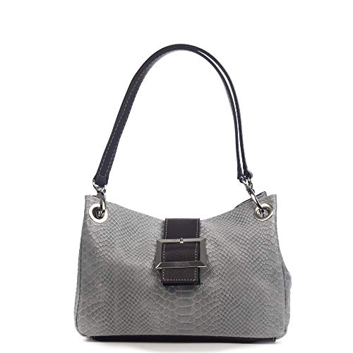 Firenze Artegiani. Anzio Axelväska Dam Äkta Läder Mocka Gravering Orm 28 x 12 x 17 cm. Färg: Grå, Grå, Utility
