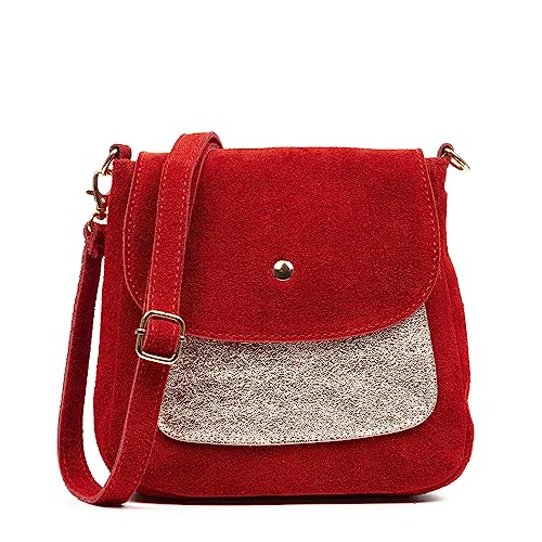 FIRENZE ARTEGIANI. Altissimo axelväska för kvinnor Äkta läder Mocka i kombination med glänsande lackerad mocka. 19x7x20 cm. Färg: Röd, Röd, Utility