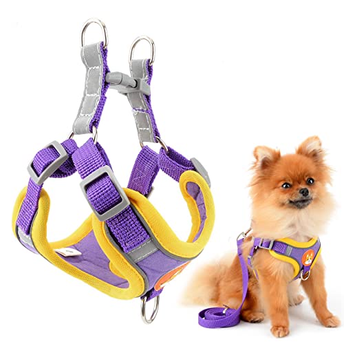 SMALLLEE_LUCKY_STORE Söt mocka husdjur step-in-valpsele och koppel set för små medelstora hundar katter fram bak klämma inget drag reflekterande mjuk vadderad justerbar bekväm väst sele för promenader, lila, M