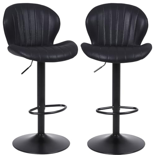 ralex-stol moderna barstolar set med 2, mocka justerbar svängbara barstolar, armlösa köksö-bänkstolar med rygg och fotstöd, svart