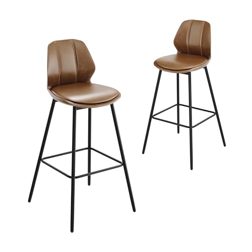 MEUBLE COSY Barstol set om 2 retro barstol vintage med ryggstöd och fotstöd av konstgjord mocka metallben för bar bistro café kök, konstläder, brun