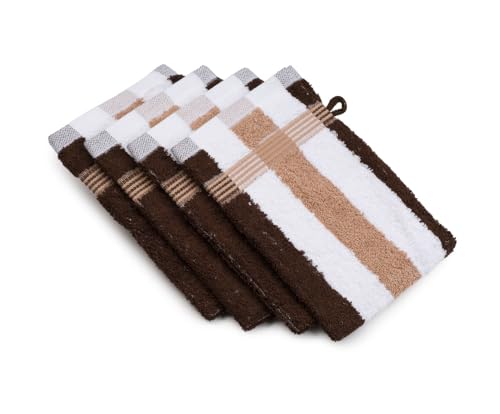 Gözze – New York bad/duschhandske/vante, set med 4, randig, mjuk och absorberande, 100% bomull, 17 x 24 cm – rödbrun/vit/mocka