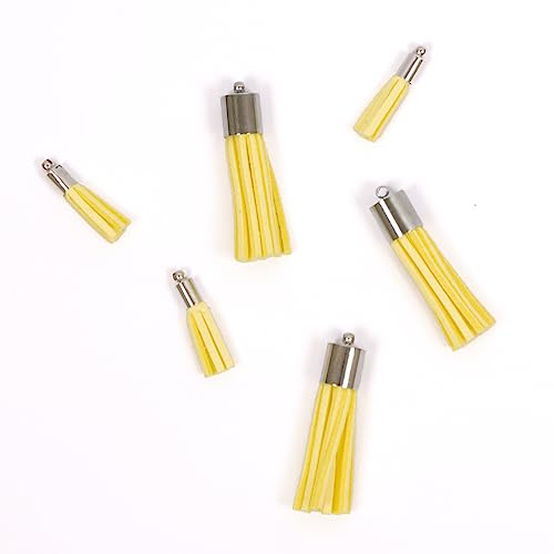 Craftelier - Set med 6 Mocka tofsar med silvernitar - Två olika storlekar | Home Decor, Smycken, Scrapbooking | Storlekar: 4 x 1 cm och 2 x 0,5 cm | Pastellgul