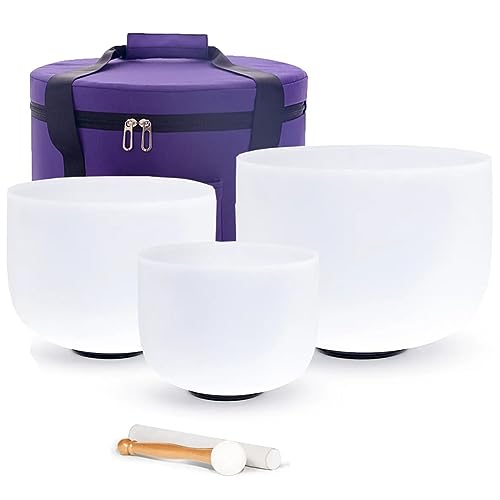 BUTXET Chakra Frosted Quartz Crystal Singing Bowls 7"G+9"E+11"C Set med 3, ljudläkande instrument med fodral Mallet Mocka Striker och O-ringar (Color : 432Hz)