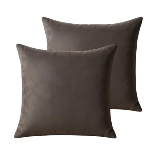MADIZZ Set med 2 kuddfodral i mocka med fransar tofsar Mjuka dekorativa kuddfodral för soffa sovrum Kuddskal 45 x 45 cm Mörkbrun