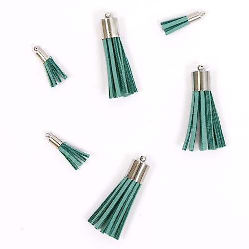 Craftelier - Set med 6 Mocka tofsar med silvernitar - Två olika storlekar | Home Decor, Smycken, Scrapbooking | Storlekar: 4 x 1 cm och 2 x 0,5 cm | Turkos