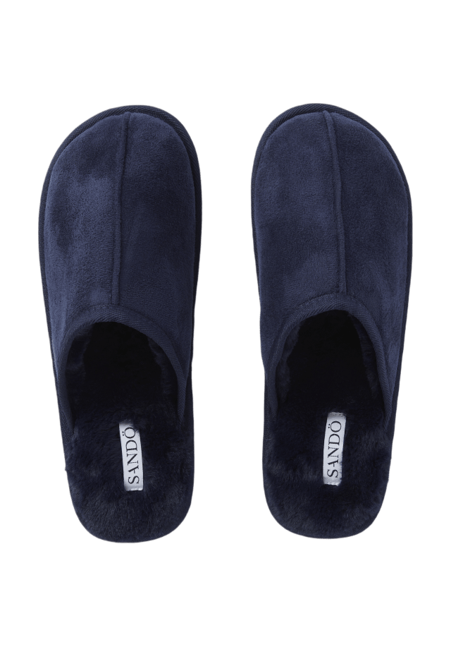 SANDÖ Fodrade tofflor i mockaimitation Blå