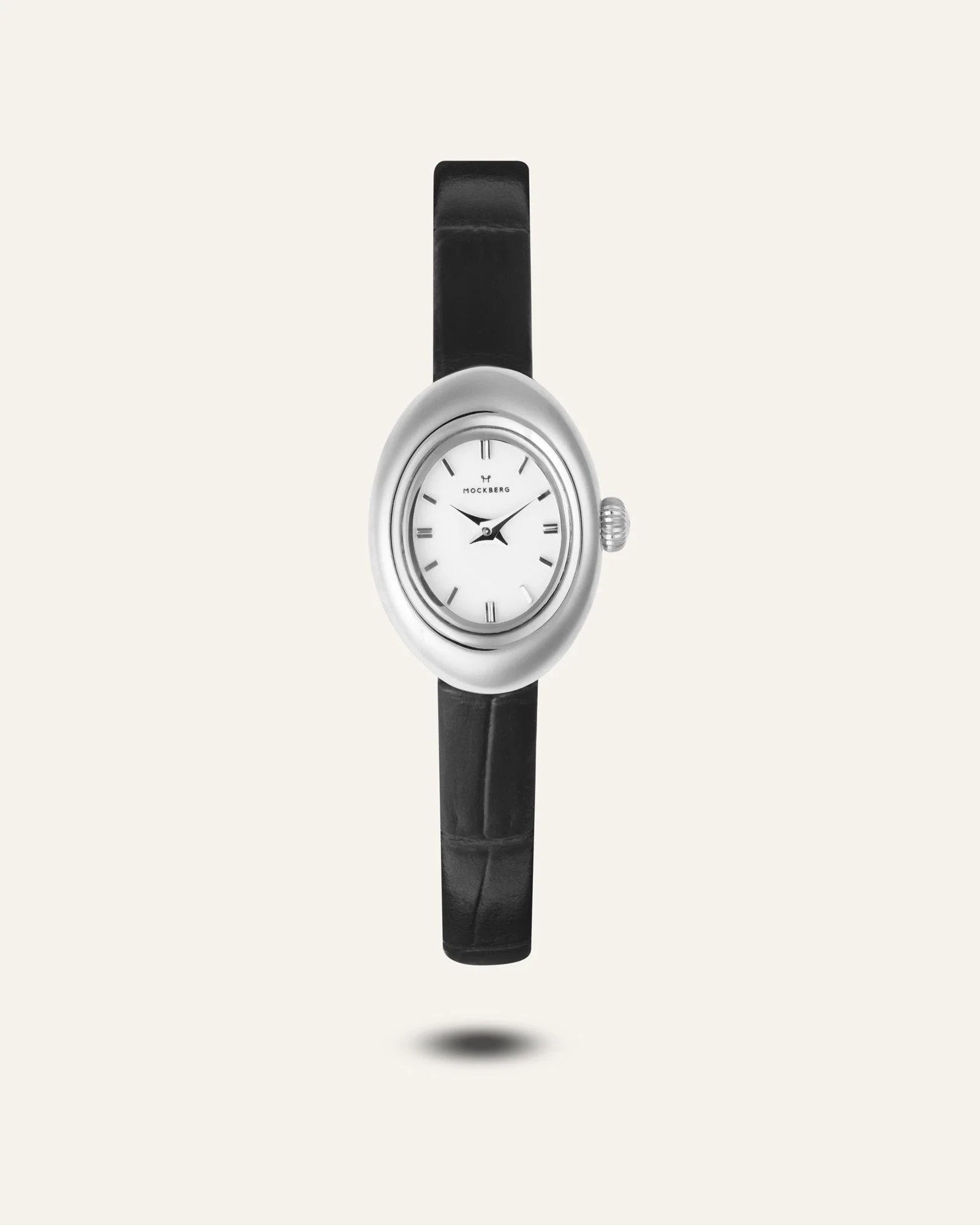 Mockberg Belle Oval Petite Läder Klocka Silver MB1413