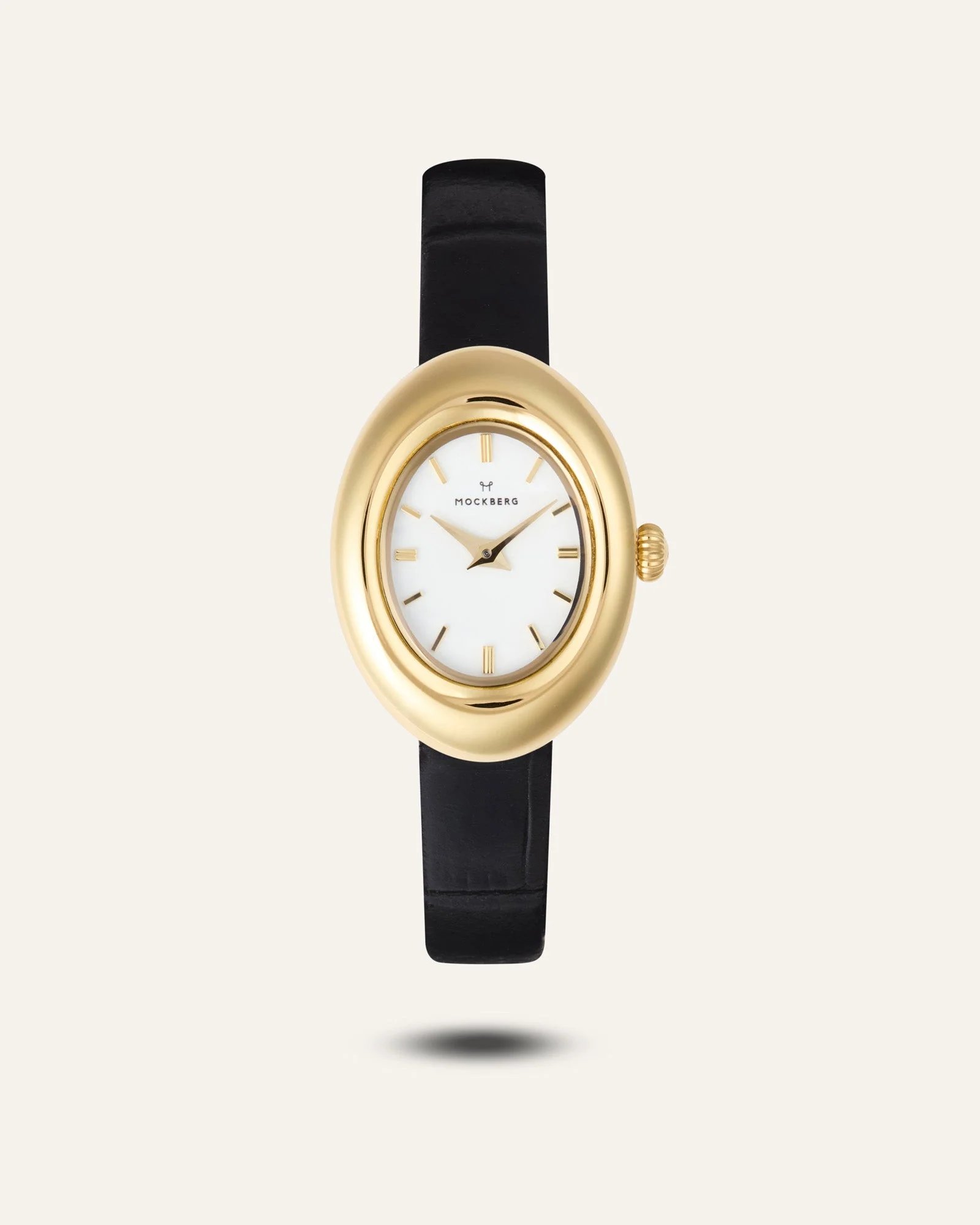 Mockberg Belle Oval Läder Klocka Guld MB1414