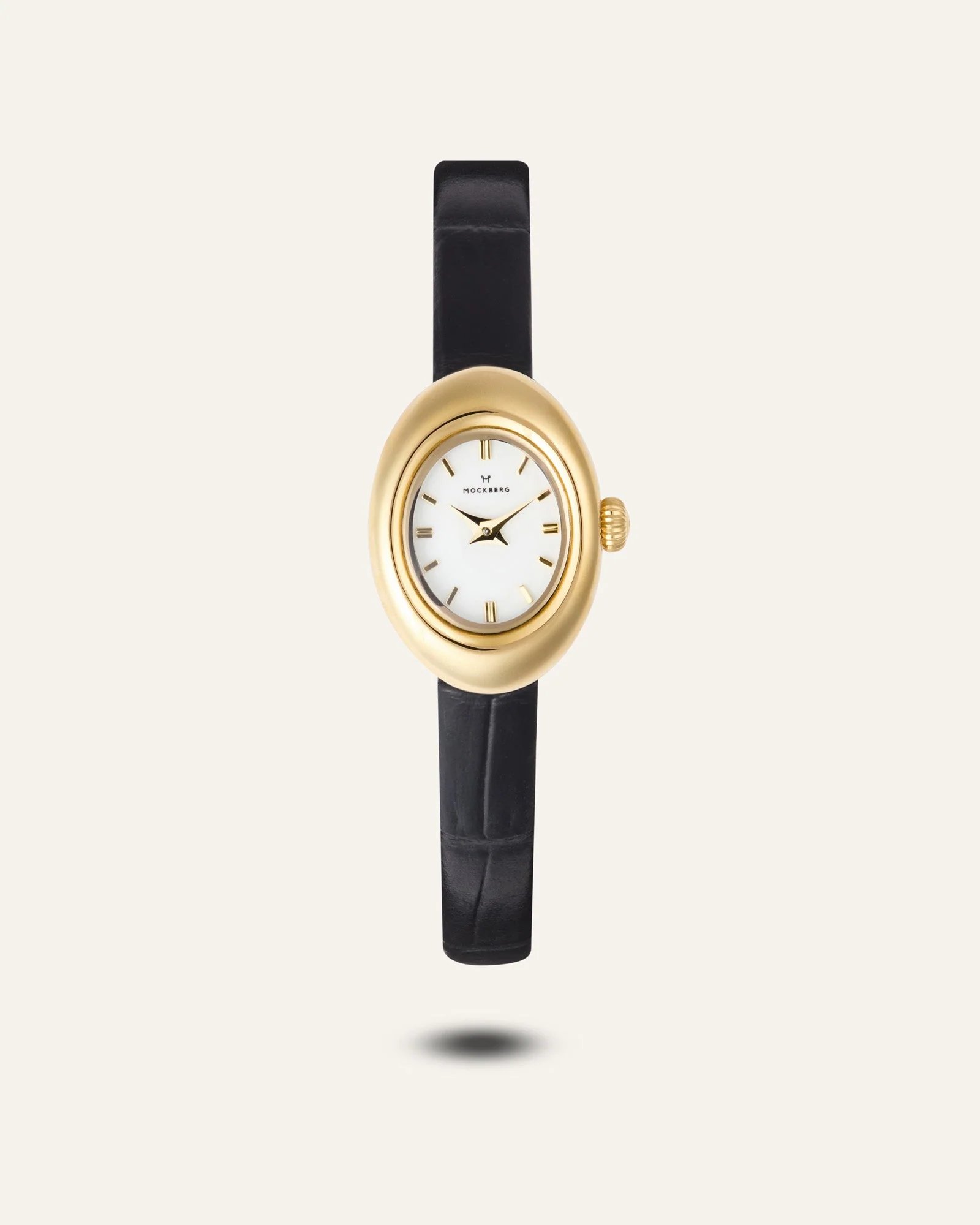 Mockberg Belle Oval Petite Läder Klocka Guld MB1412