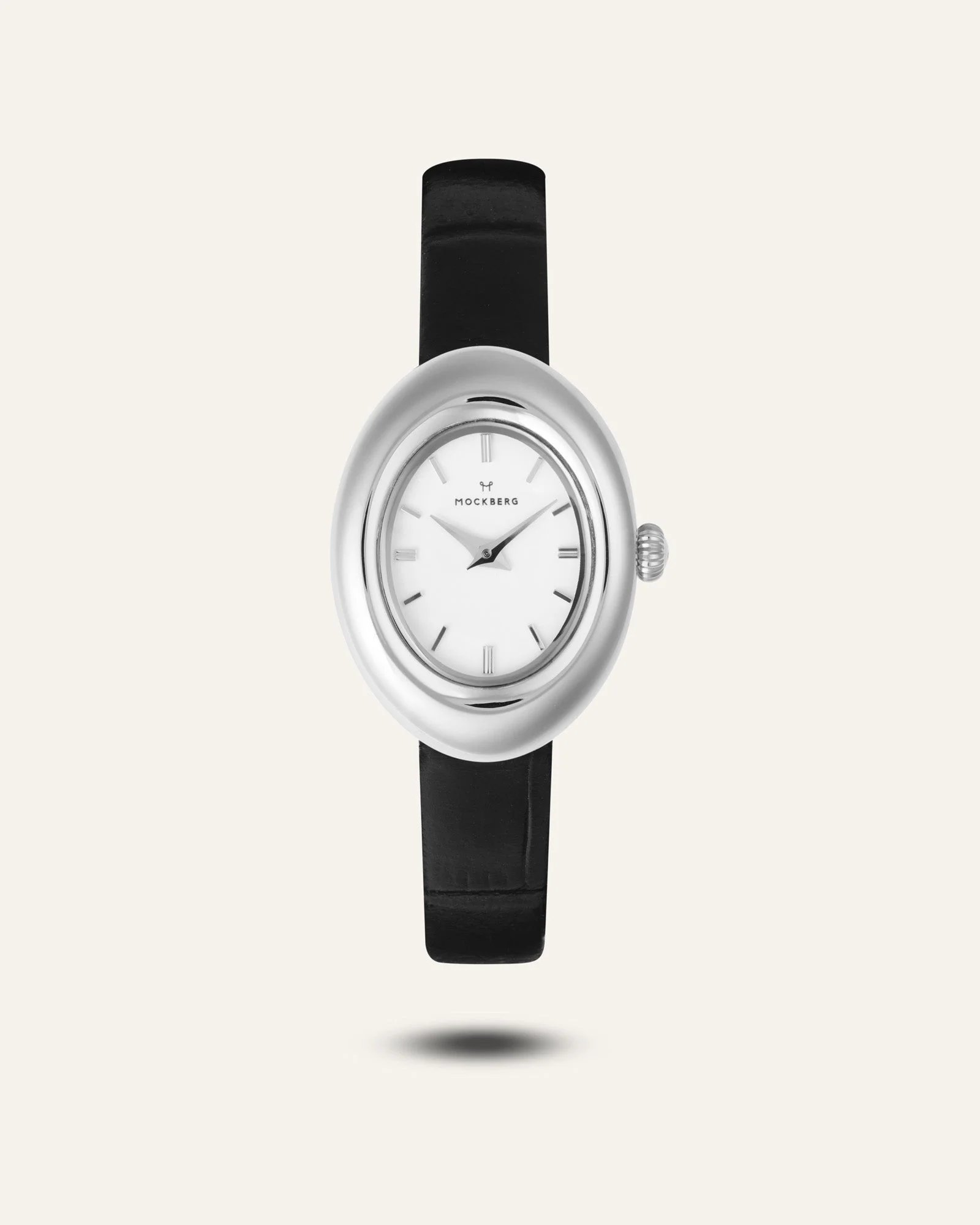 Mockberg Belle Oval Läder Klocka Silver MB1415