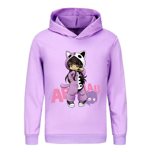 SharkBebe Aphmau bomullshuvtröjor för flickor långärmad tecknad sporttröja för barn mode kläder topp, Lila, 12-13 Years