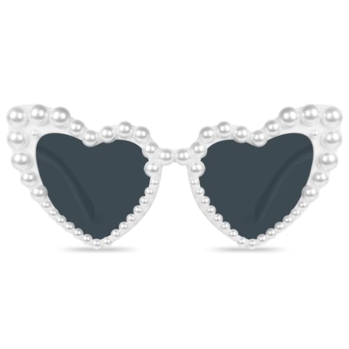 Ainiv Hjärta solglasögon, 2 stycken retro kattöga hjärtglasögon, UV 400 solskydd och UV-skydd, solglasögon män solglasögon kvinna mode glasögon för barn fest resa fotografering, Pärla, 15 mm x 52 mm x