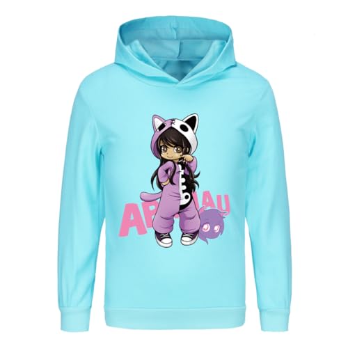 SharkBebe Aphmau bomullshuvtröjor för flickor långärmad tecknad sporttröja för barn mode kläder topp, Himmel, 12-13 Years