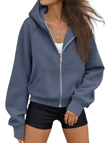 AUTOMET Dam dragkedja beskurna huvtröjor fleece överdimensionerade sweatshirts hel dragkedja jackor Y2k höstkläder 2023 modekläder, gråblå, S