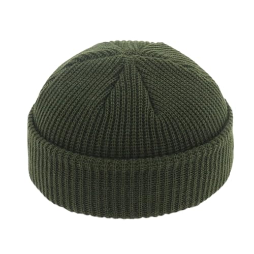 SLEEKEE 1 grön beanie-mössa, fiskarmössa, beanie-stickad mössa, beanie-retromössa, lämplig för fiskare, arbetare, modekläder, Olivgrön, L