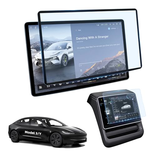 LANGBEAN Tesla Model Y Juniper Skärmskydd Matt [Utan Bländning och Fingeravtryck], 9H Härdat Glas för Model 3 Highland, 15,4" + 8" Protector Skyddsfilm Främre och Bakre [2-Pack]