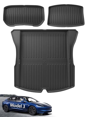 ASZSK [3 Stycken] Tesla Model 3 2024 Bagagerumsmatta, Tesla Model 3 Highland TPE Bagagerumsskyddsmatta, Halkskydd och Vattentät Bagagerumsmatta, Svart