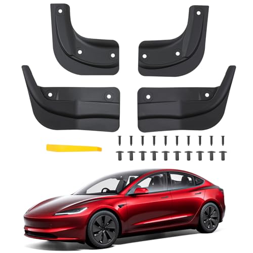 ASZSK [4 Stycken] Tesla Model 3 2024 Stänkskärmar, Model 3 Highland Stänkskydd, Stänkskärm Fram och Bak med Monteringsskruvar, Ingen Borrning av Hål Krävs