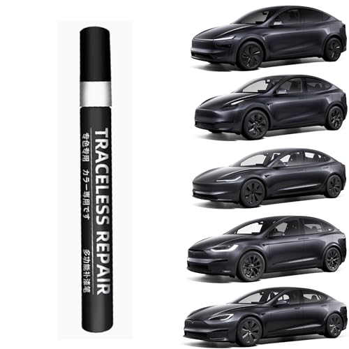 TOPABYTE Retuscheringsfärg för Tesla Model Y Juniper Model 3 Highland Model X Model S Bil Retuscheringspenna, Reparation Reparation Repor Måla Upplösning, Markör Skydd för Bilrester, Stealth Grey -