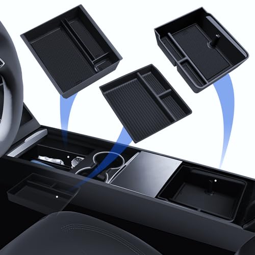 LANTU 3 St Tillbehör för Tesla Model 3 2024-2025 Mittkonsol Organizer, Silikon Organizer Bricka och Armstöd Förvaringslåda med Halkfritt Underlägg Tesla Highland Tillbehör
