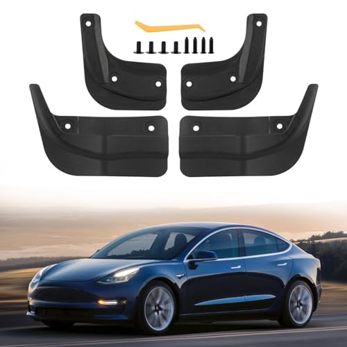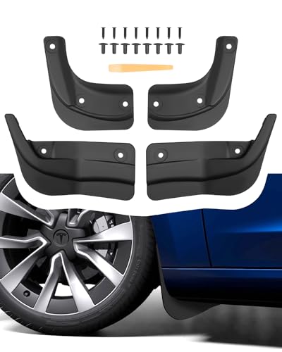 LANGBEAN Stänkskärmar för Tesla Model 3 Highland, Smutsfångare Fram Och Bak Med Monteringsskruvar, Stänkskydd för Alla Väder Tillbehör för Model 3 2024 2025, Ingen Borrning Behövs [4 Stycken]
