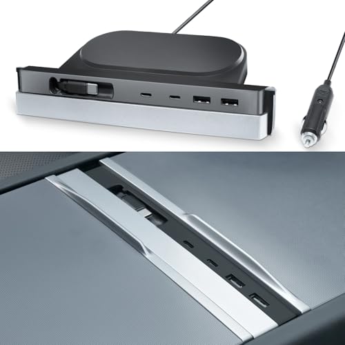 USB-hubb för Tesla, 45W utdragbar hub-dockningsstation, snabbladdning med kabeladapter för Tesla Model 3 Highland 2024+/Model Y Juniper 2025, mittkonsolens dockningsstation för Tesla-tillbehör