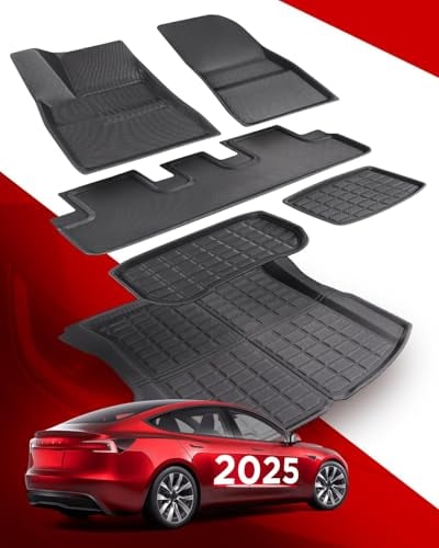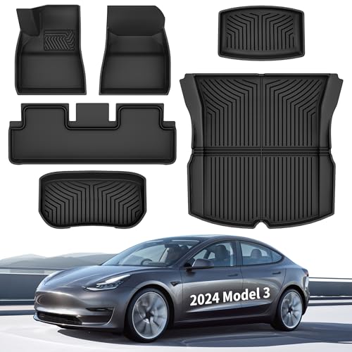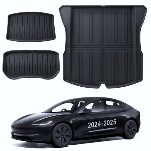 3W för Tesla Model 3 Highland 2024-2025 Bagagerumsmatta, Året Väder Hållbara Hundvänliga Thorex™ Golvmattesatsen, Lättrengjorda Vattentäta Anti-slip Fotmattor, Biltillbehör