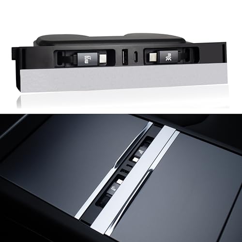 Leikaendi USB Hub-laddare för Tesla med 2 Type-C drågbara kablar för Model Y Juniper 2025-2026 & Model 3 Highland 2024-2025, Totalt 140W Mobiltelefonladdstation Mittkonsol Tillbehör