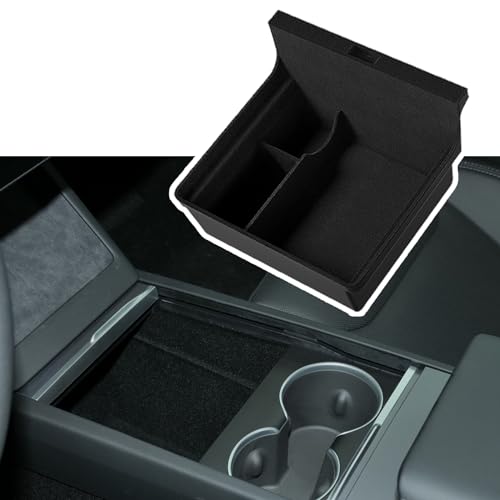 TOPABYTE Centerkonsol organiserare för Tesla Model Y Juniper Model 3 Highland 2025 2024 flockad mittkonsol förvaring organiseringsbricka tillbehör (paket med 3)