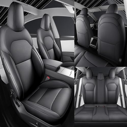 ZUMAHA Bilsätesöverdrag hela set för Tesla Model 3 Highland 2024 sittdynor vattentäta andningsbara helt surroundanpassade skyddstillbehör, svart stil