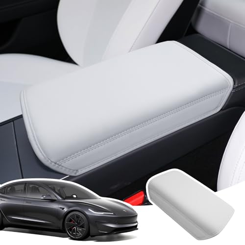 LANGBEAN Armstödsöverdrag för Tesla Model 3 Highland 2024 2025 2026, Mittarmstöd Skydd i Förtjockat PU-läder, Halkfria Tillbehör för Att Höja Armstödet, Vit