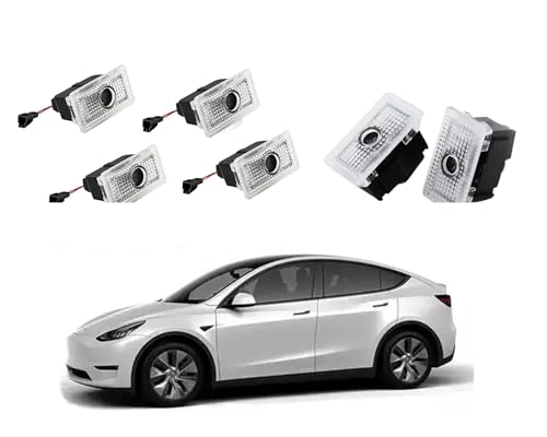Manori Market Set med 4 LED-strålkastare för bildörr, bil logotypprojektor för Tesla Model 3/Y/S/X, 3 Highland, Juniper Tesla tillbehör (4 st)