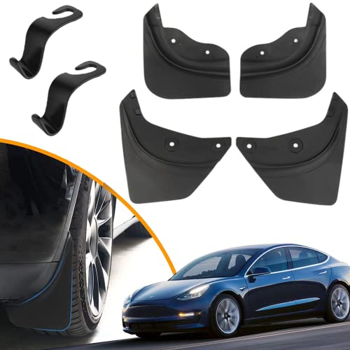 Set med 4 smutsfångare för Model Y, Tesla Model Y-tillbehör, TPE & PP Ingen borrning, kompatibel med 2021–2023 Model Y, främre och bakre smutsfångare + 2 sitskrokar