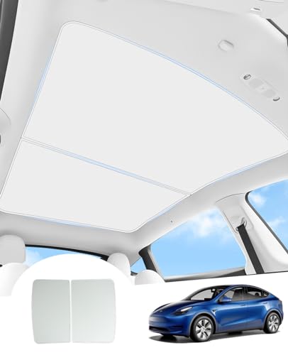 GAFAT 2021-2024 Tesla Model Y glastak solskydd, Tesla Model Y solskydd, tak inget slapphet, isolering och reflektion, integrerat parasoll inomhus, UV-skydd, håller dig sval