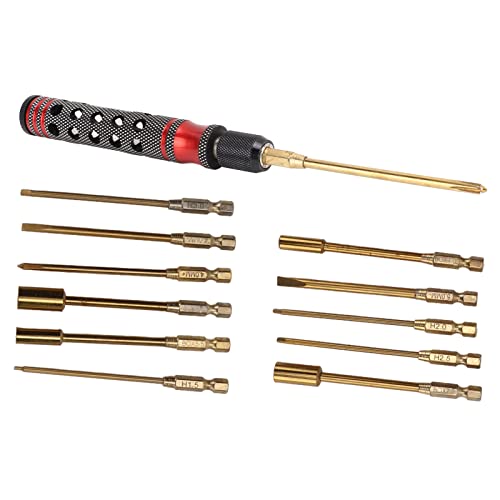 Reparationsskruvmejselset, 12 i 1 RC reparationsverktyg, avtagbara huvuden med röda handtagsdrönare, modellbilar
