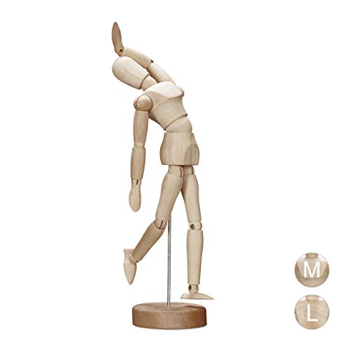 Relaxdays Länkdocka av trä, rita, hantverk, rörlig modelldocka, konstnär, med stativ, 21,5 cm hög, naturlig