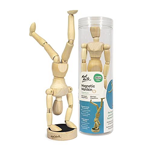 Mont Marte Mannequin – 20 cm – Magnetiska händer och fötter – Hane, skyltdocka av trä – Flexibel modelldocka – Perfekt trädocka för ritning