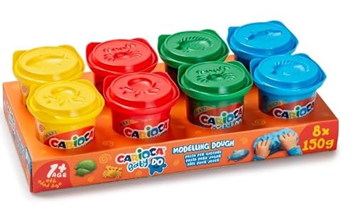 Carioca Modelleringspasta för baby 1+ | Baby Do plasticine för barn från 12 månader | 4 blandade färger | Lufttorka och smutsar inte händerna | 8 stycken om 150