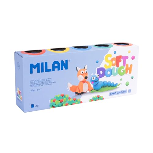 MILAN® Låda 10 burkar 85gr modelleringspasta Mjuk Dough. Färger: Vit, Gul, Orange, Röd, Rosa, lila, blå, ljusgrön, grön och svart.