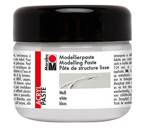 Marabu 12270025070 – modelleringspasta, vattenbaserad krämig akrylpasta, ljusäkta, väderbeständig, vältäckande, för reliefformade till plaststrukturer, 225 ml, vit